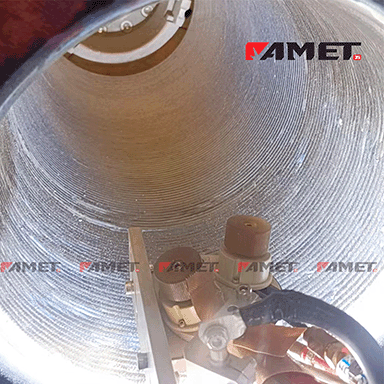 6m长钢管作为石油化工、核电能源、海洋工程、压力容器等高端领域的核心输送与承载部件,其内壁长期承受高温、高压、强腐蚀介质(如酸碱、海水、油气)冲刷与磨损,双钨极热丝TIG堆焊技术,融合双钨极复合电弧的高效能量供给与热丝预热的熔敷率优势,搭配NiCrMo-3镍基合金的优异耐腐耐磨性能,专门针对6m钢管内壁的长距离、大面积堆焊需求,突破传统堆焊工艺效率低、堆焊不均、稀释率高的行业痛点,实现6m钢管内壁精准、高效、高质量堆焊,为长管内壁性能升级、延长服役寿命提供可靠技术支撑,广泛应用于各类高端工业长管的制造与修复领域。